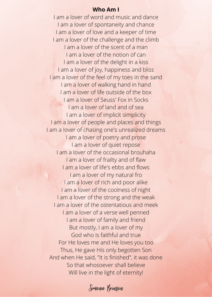 I hadn’t written a poem since December 22, 2019. Then on December 23rd I decided it was time to work my creative muscle. Within minutes of finishing that poem, I had written another one, which was completed on December 4th at 12:15am. I decided right then and there to challenge myself to write a poem a day for the next 365 days. I am up for the challenge!